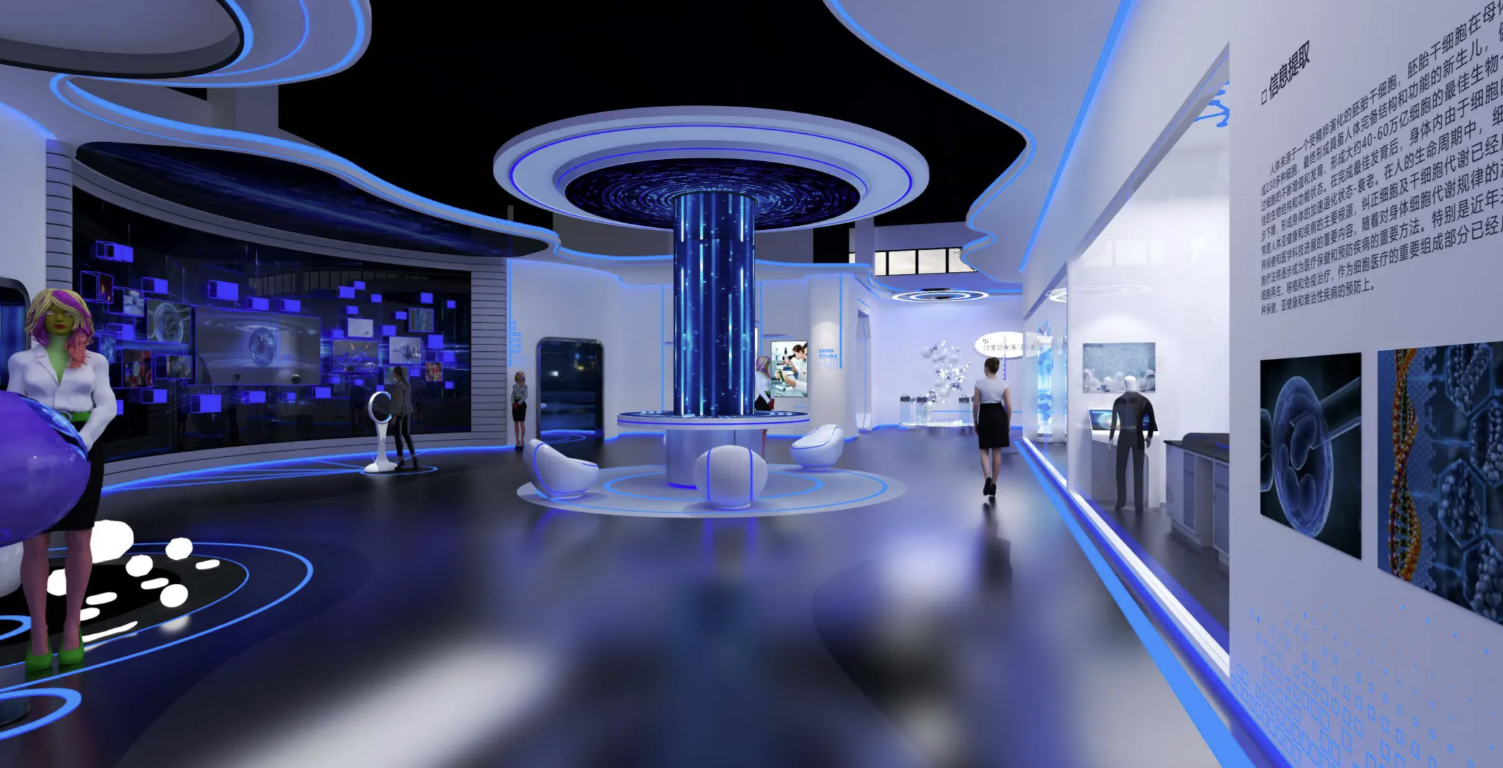 沿着 "生命解码" 主题动线前行,机械臂正在 3D 打印心脏组织。当观众戴上 MR 眼镜,原本透明的培养皿突然具象化呈现:新生血管在心肌细胞间延伸,受损部位逐渐愈合的过程如同魔法般清晰可见。展厅特别设置的触感交互墙,让参观者通过手势模拟干细胞分化,指尖滑动间,皮肤细胞、神经细胞、胰岛细胞次第点亮,组成生命色彩的调色盘。
