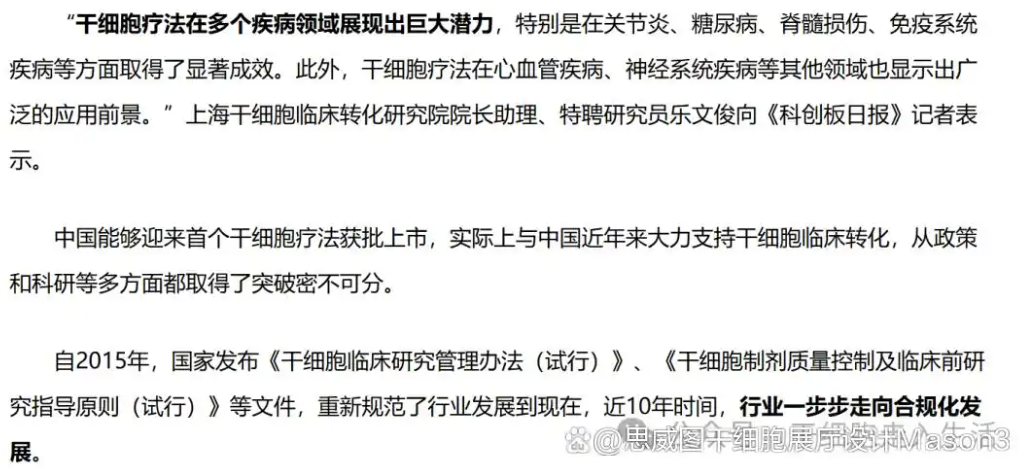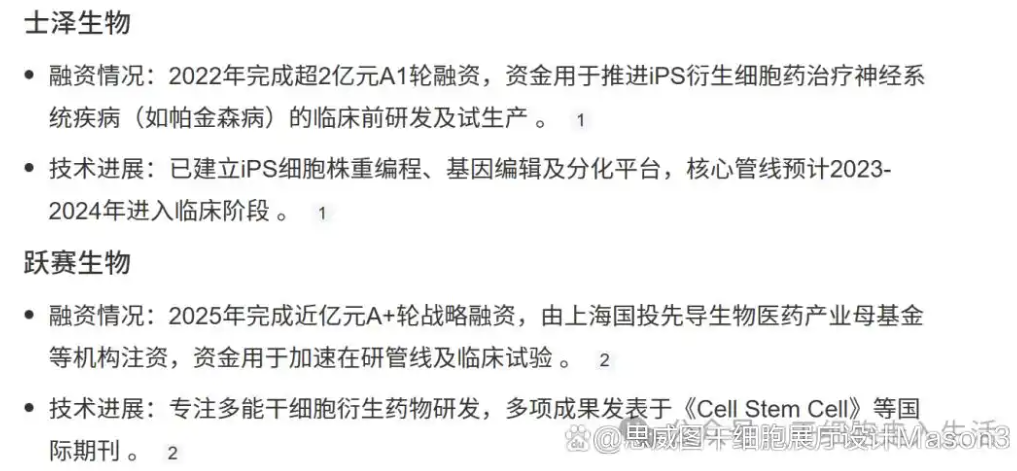 · 企业崭露头角:一批专注于干细胞药物研发的生物科技公司,如星耀昆仑、士泽生物等,在完成多轮融资后,其核心管线正逐步推进至临床试验阶段。
