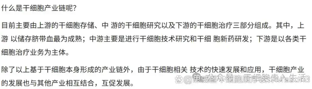 · 产业链完善:从上游的细胞储存(脐带血、脐带、胎盘干细胞库),到中游的干细胞技术研发(各类干细胞制剂、类器官模型),再到下游的临床治疗,一条完整的产业链正在形成。