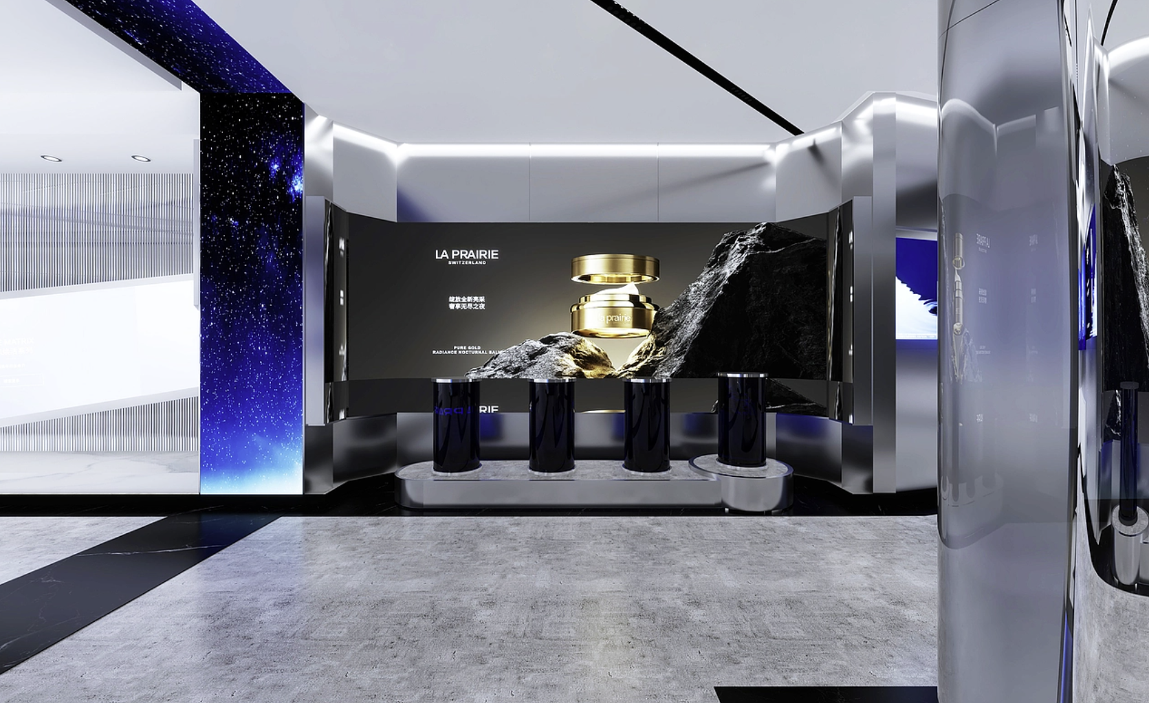 中大型展厅可设60-100㎡光影区,采用多面投影叠加设计,可与品牌故事墙、产品展示区复合布局,节省独立空间占用。预留5%-10%弹性空间,采用磁吸展墙调整投影边界,设备存放区控制在8㎡内,隐藏式设计不影响观感。
