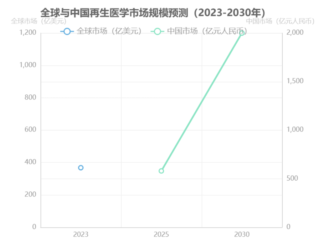 再生医学作为继药物治疗和手术治疗之后的“第三次医学革命”,正以年均复合增长率15%-25%的态势重塑全球医疗产业格局。根据弗若斯特沙利文数据,2023年全球市场规模达368亿美元,预计2030年突破1200亿美元,其中亚太地区增速领先(CAGR 25%),中国作为核心增长引擎,2025年市场规模预计达580亿元,2030年将突破2000亿元,CAGR高达23.6%。