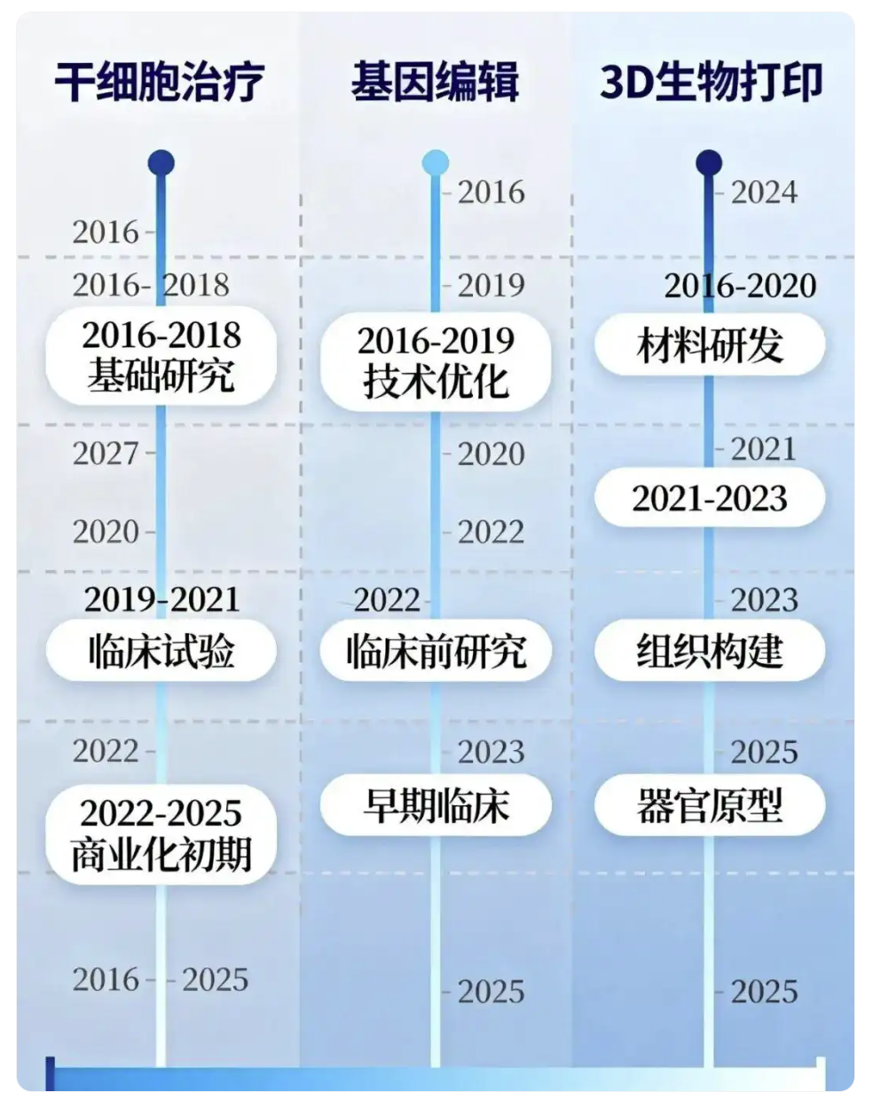 技术路线创新方面,中国在干细胞重编程领域形成独特优势。邓宏魁团队开发的化学重编程技术将人CiPS细胞诱导时间从30天缩短至10-16天,较日本iPS技术更具效率优势,为个性化治疗提供底层技术支撑。这种技术差异体现在再生医学发展历程中: