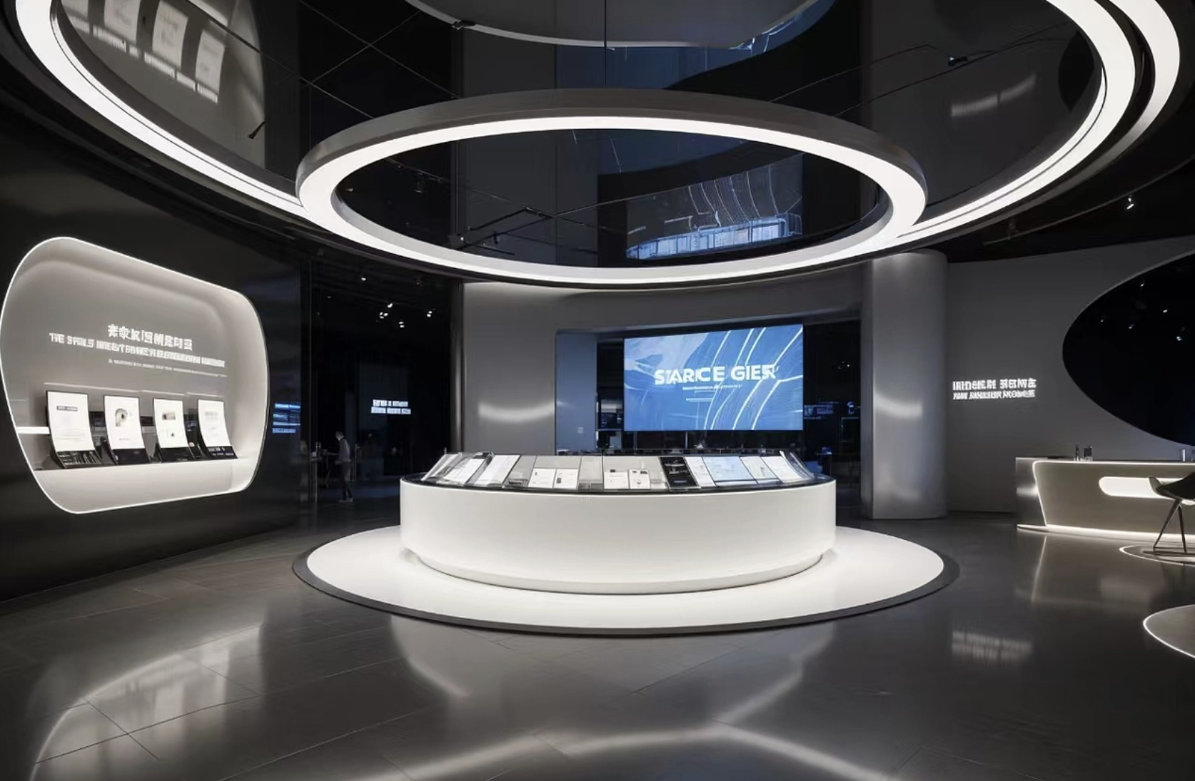 当参观者步入思威图干细胞展厅,仿佛开启了一场奇妙的微观世界探索之旅。入口处,曲面 LED 打造的「生命密码隧道」率先映入眼帘,这可不是普通的隧道,它可是打破了传统展厅次元壁的神奇存在。180 度环幕墙面,如同一块巨大的屏幕,将放大千万倍的干细胞动态影像生动呈现。