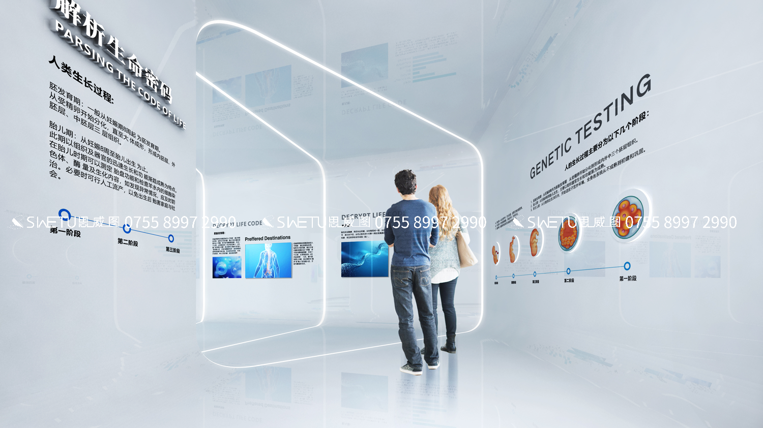 这些元素相互融合,共同营造出一个富有现代感和科技感的展示空间,让观众在参观过程中感受到干细胞研究的魅力和未来发展趋势。