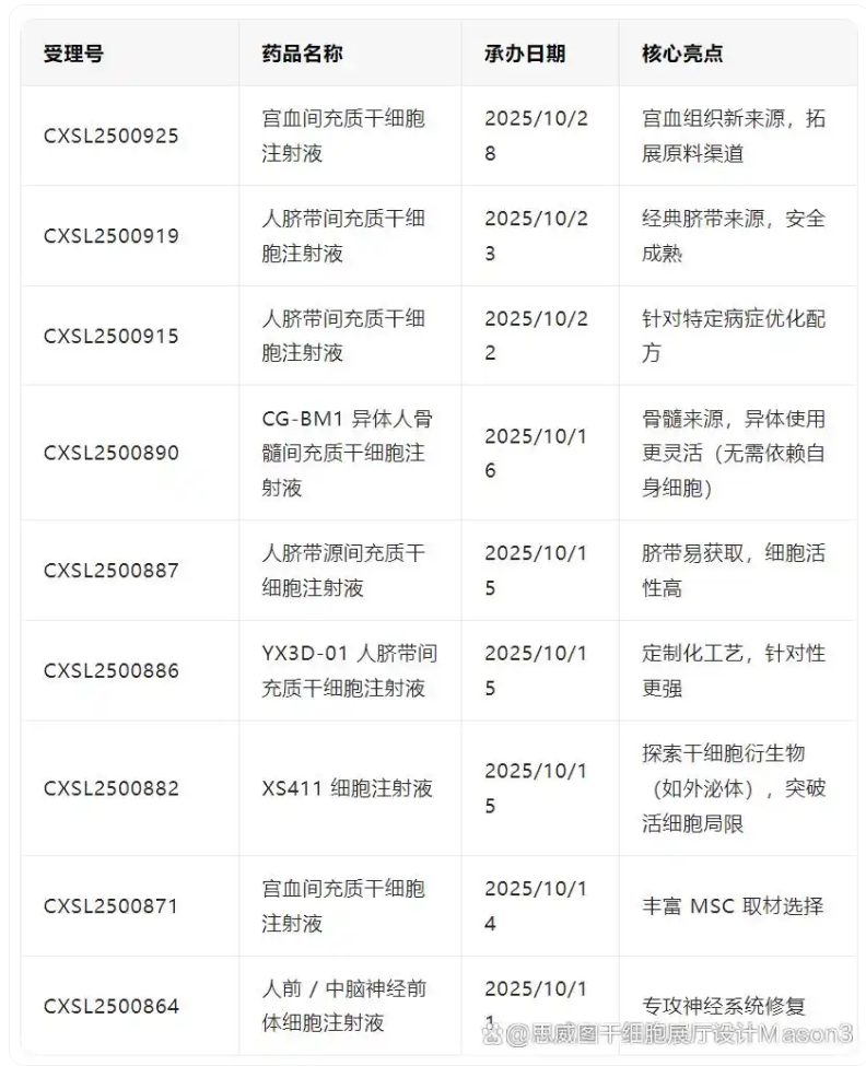 这次 9 款新药集中受理,释放了关键信号:干细胞疗法正从 “小众探索” 走向 “临床主舞台”。